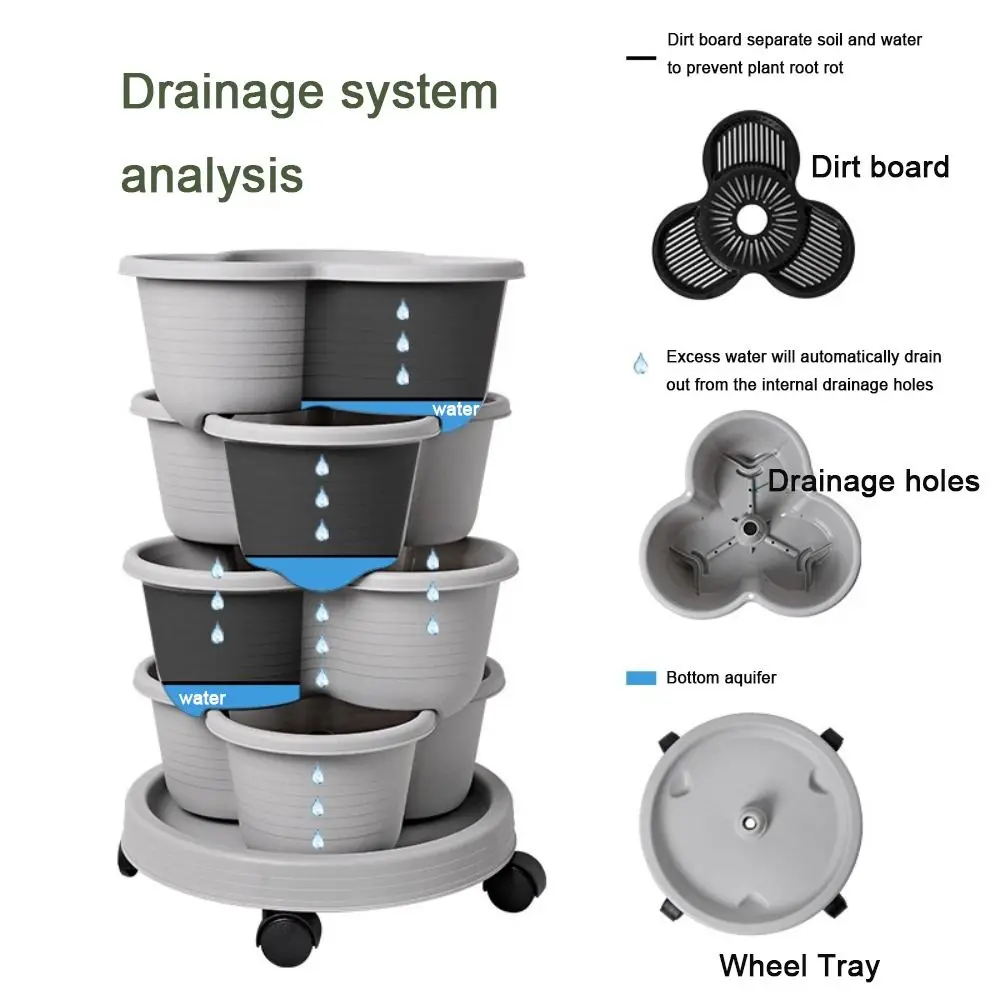 1.Suporte de vegetação aprimorado: Especialmente elaborado para distribuir a água uniformemente e estimular o crescimento de batatas, morangos e vegetais diversos em locais apertados, este plantador empilhado melhora o potencial da colheita com um sistema de ventilação cuidadoso